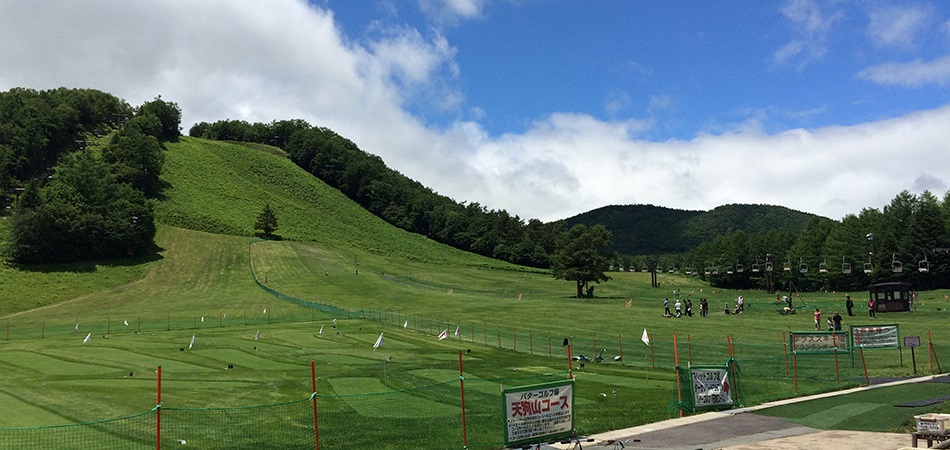 名湯・草津温泉街から車で約5分でアクセスできる「草津温泉スキー場」。グリーンシーズンは「天狗山プレイゾーン」として営業中です。本白根山を背景に、夏でも涼しい高原の風を感じることができる絶好のアクティビティスポット!