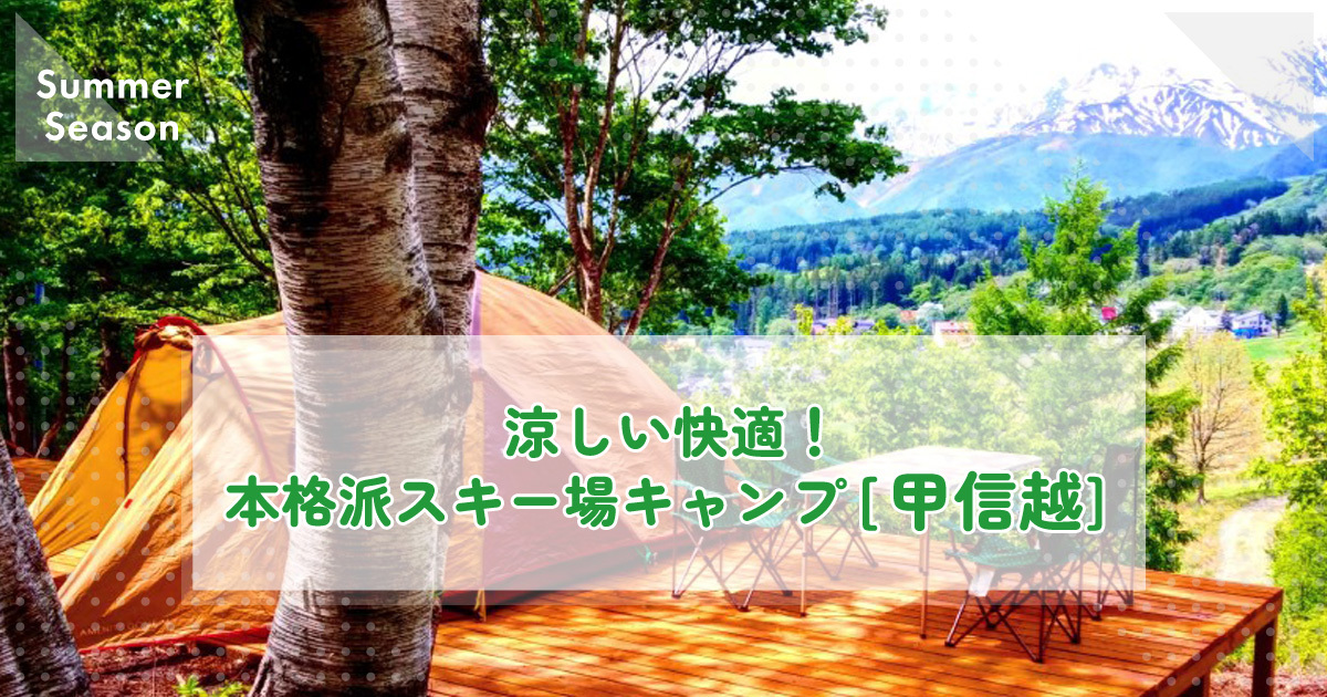 甲信越エリアは、日本でも屈指の高原リゾート地帯!夏でも涼しく快適な高原キャンプが楽しめる絶好のエリアです。標高1,000m以上の高地に位置するキャンプ場が多く、真夏でも朝晩は肌寒く感じるほどの涼しさです。今回は、長野・新潟のスキー場キャンプ場から厳選した本格派キャンプ場をご紹介します。