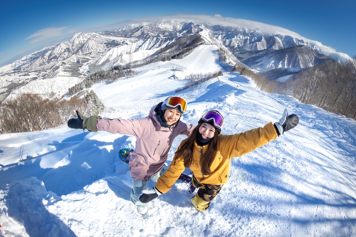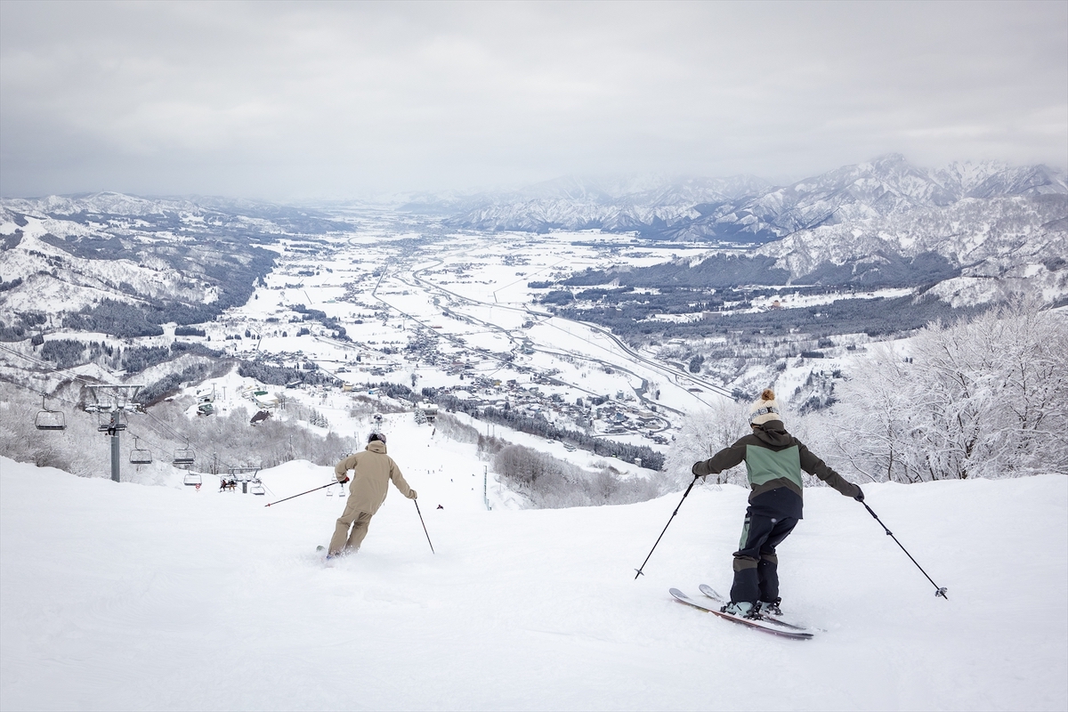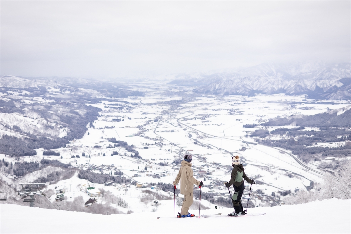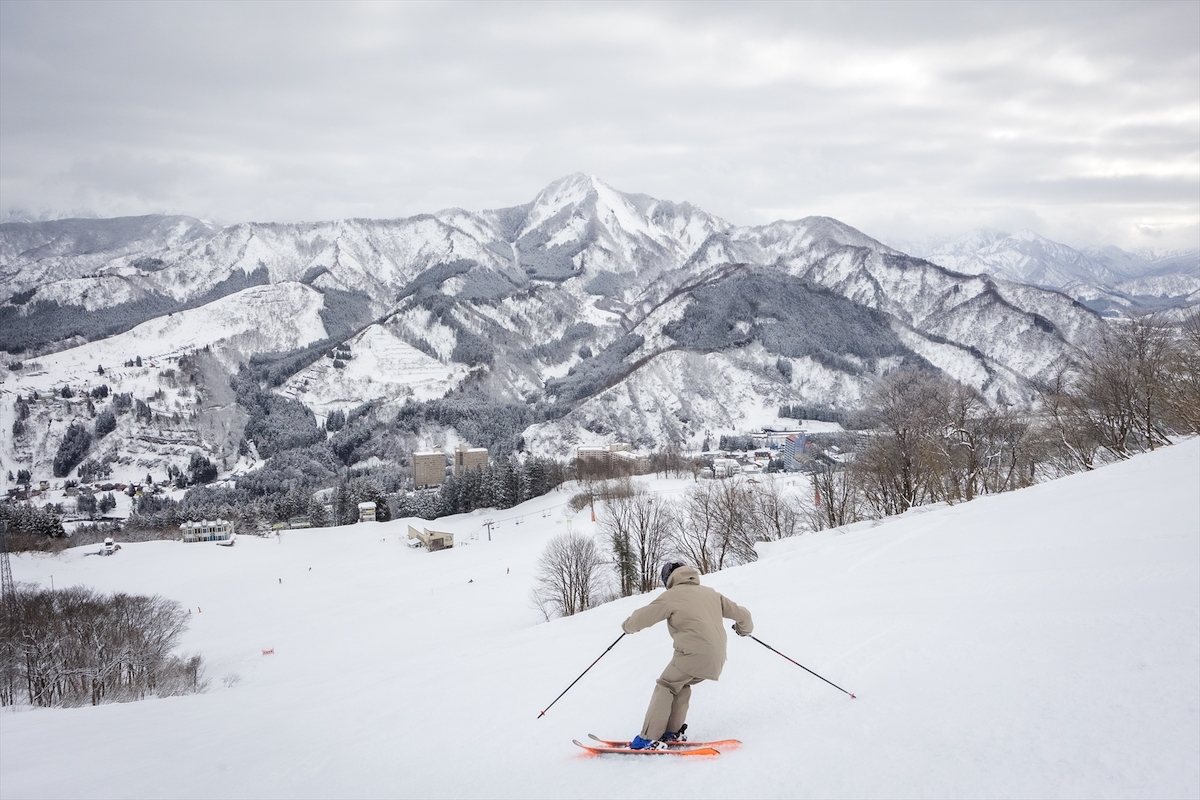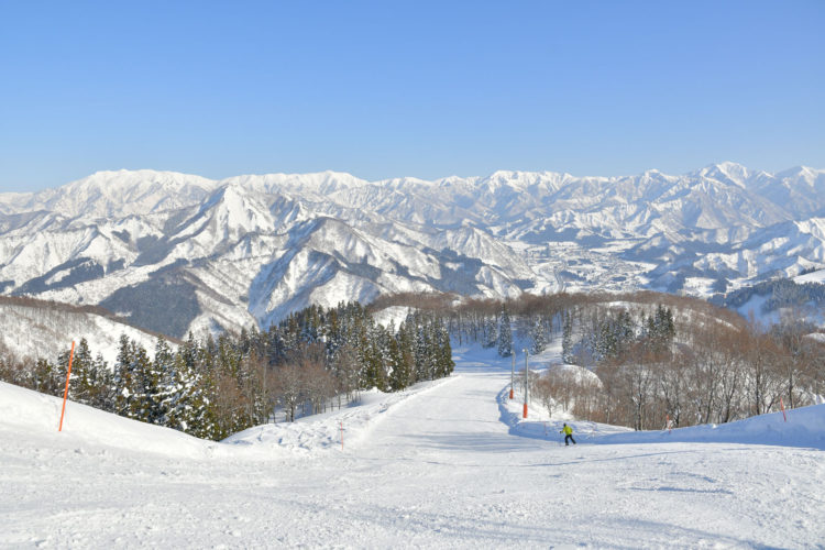 ゲレンデ中間部より上部からは、新潟県が誇る越後三山(八海山、越後駒ヶ岳、中ノ岳)と美味しいコシヒカリをたくさん収穫できる魚沼平野を一望する絶景が楽しめる。
