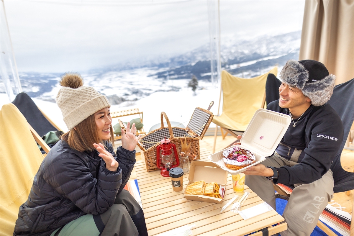 またザ・ヴェランダ石打丸山のすぐ横にはドームテントや気軽に雪遊びが楽しめる「スノーガーデン」があり、スキーやスノーボードをしない人でも、さまざまなスタイルで絶景を楽しみながら過ごせる空間を提供。