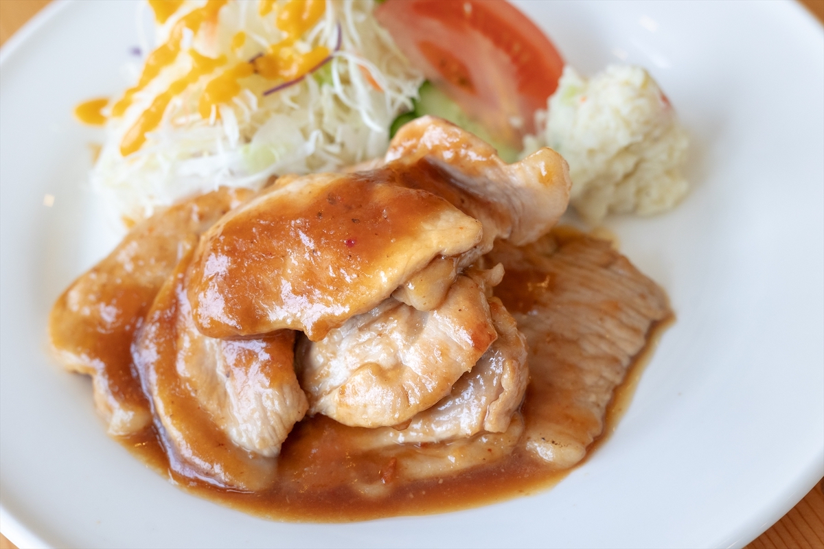 モンブランの定食でイチ押しは「焼肉定食」。炒めた豚肉に絡まる甘辛ダレが絶品で、ご飯が途中で足らなくなってしまいそうになるほど、かなりヤバいレベルの美味しさ(笑)