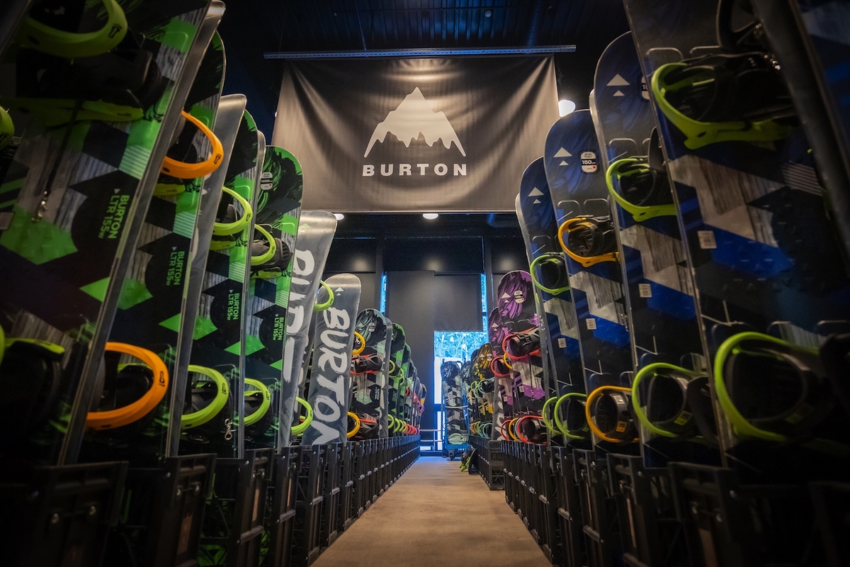 神立はレンタルが充実。スノーボードはすべてバートンで、今季よりすべてのスノーボードのバインディングは着脱が簡単な「ステップオン」を採用。ウエアも好きなデザイン、サイズを選べるバイキング方式で大好評!