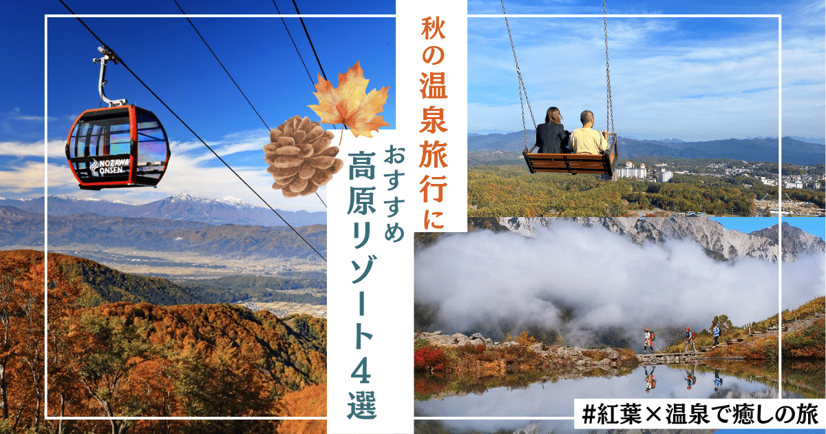 冬はスキー場となる高原リゾートは、夏は涼を、秋は紅葉の美しさを感じられる場所として私たちを楽しませてくれます。なかでも温泉街に隣接したリゾートは、雄大な自然と温泉をかけあわせた非日常の滞在に最適な場所です。日常の喧騒を離れ、自然の美しさに癒されながら、極上の温泉でゆったりとした時間を過ごす。そんな贅沢で心温まる秋の旅は、きっと一生の思い出になることでしょう。