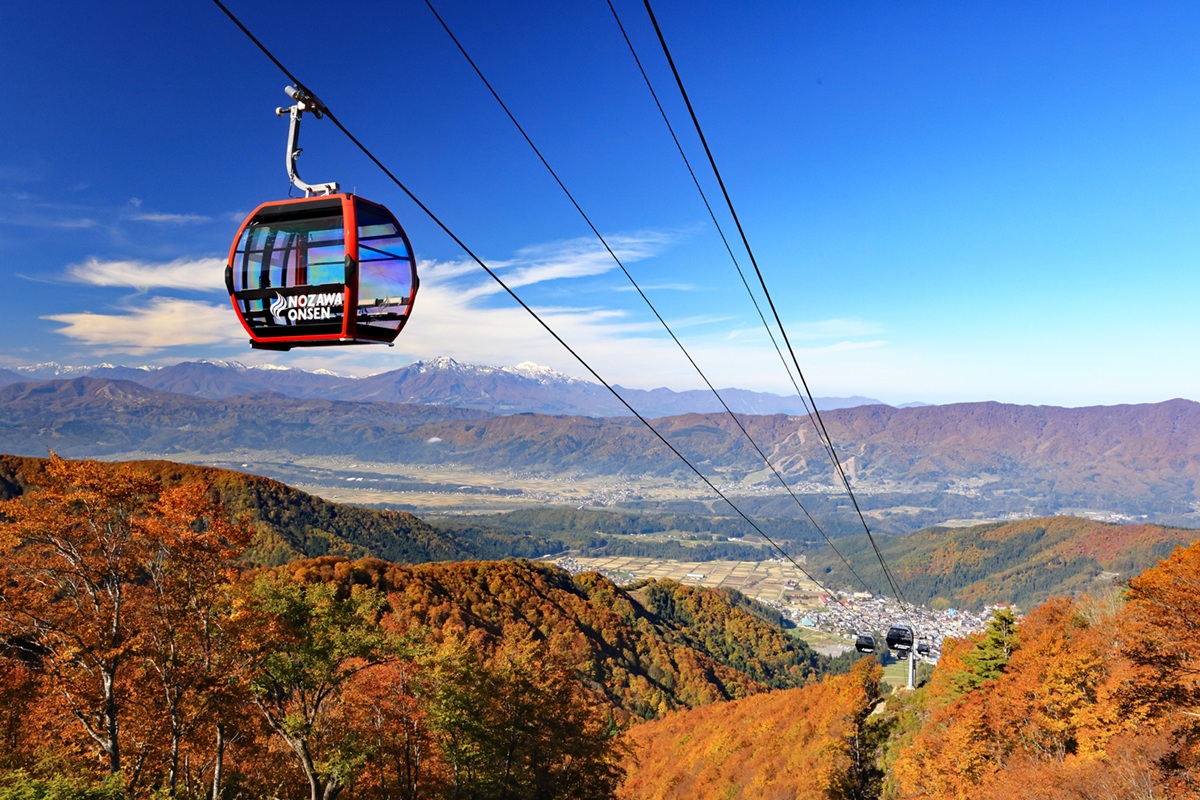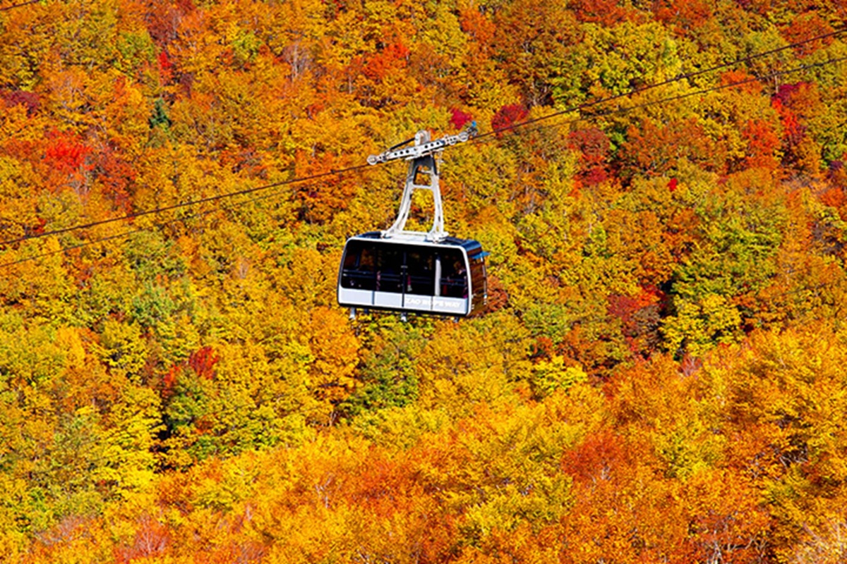 山形県の蔵王温泉スキー場は、秋になると山形随一の紅葉スポットとして多くの観光客で賑わいます。標高1,661mの地蔵山頂駅まで続く蔵王ロープウェイでの空中散歩や、約800mの標高差を活かした約50日間にわたる長期間の紅葉が魅力です。
