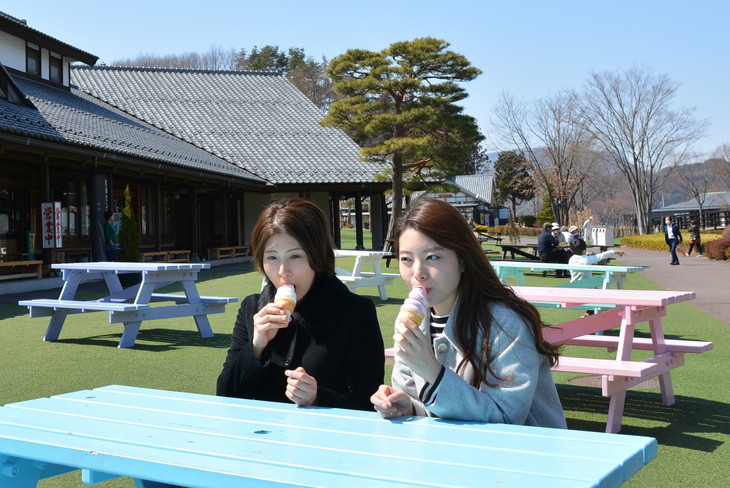 ミルク工房の「のむヨーグルト」を使ったヨーグルトソフトなど、飲食店のメニューは地域に根差したものばかり。園内には休憩や飲食ができるベンチなども多く、ショッピングをしたり、食べ歩きを楽しんだりしながら充実した1日を過ごせる。