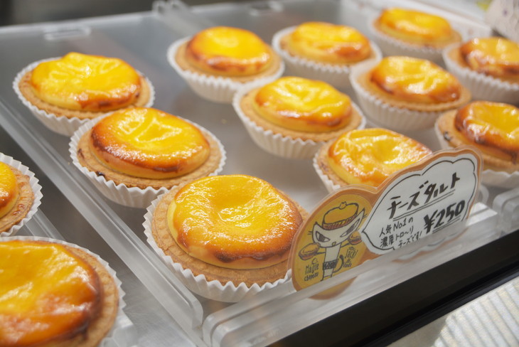 一番人気は「チーズタルト」。口のなかで濃厚な特製チーズムースがとろける食感は、やみつきになるおいしさだ。自然素材にこだわり、タルト生地には群馬県産の小麦粉を用い、鹿児島喜界島産のさとうきびを100%で作った「きっすい糖」が使われている。