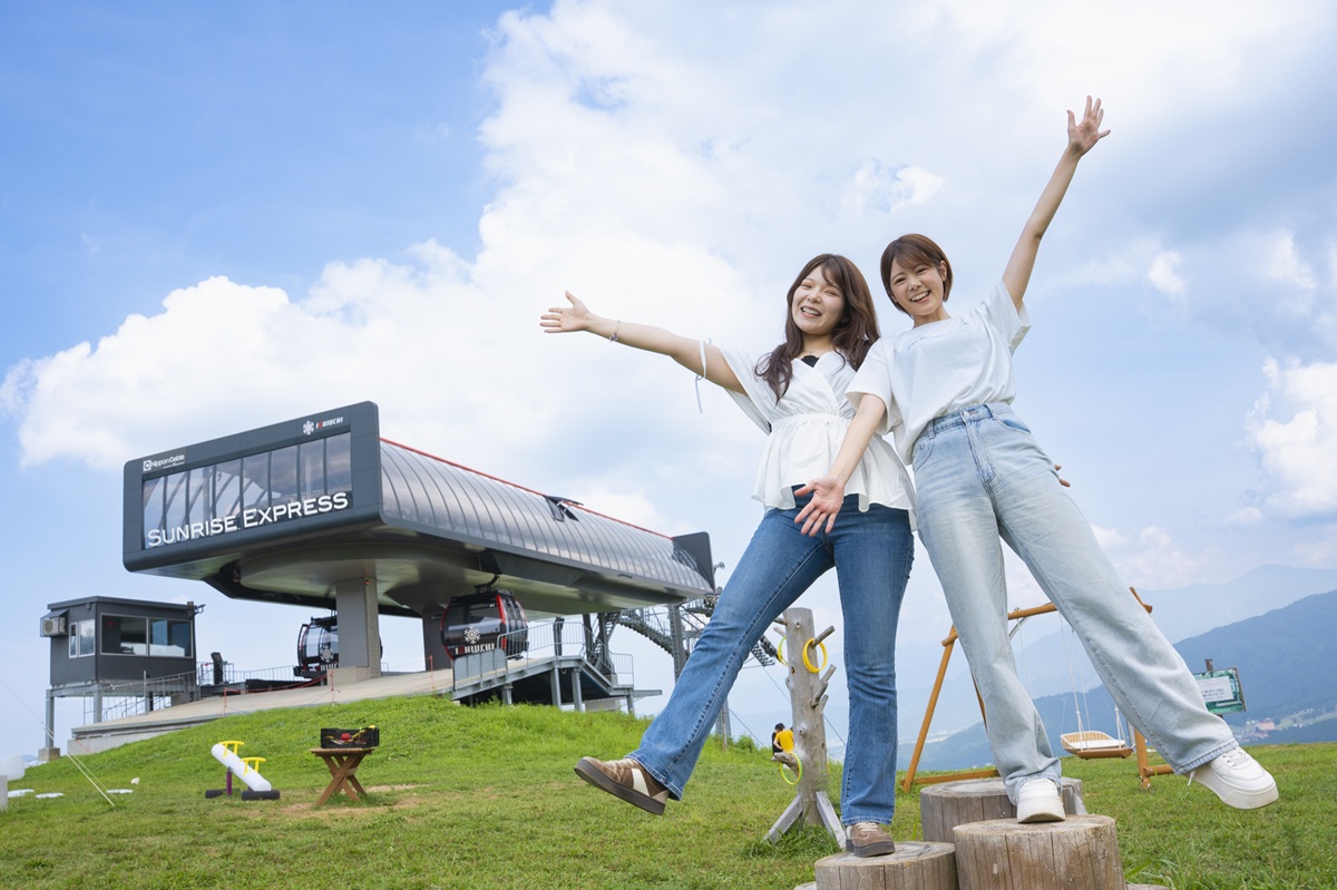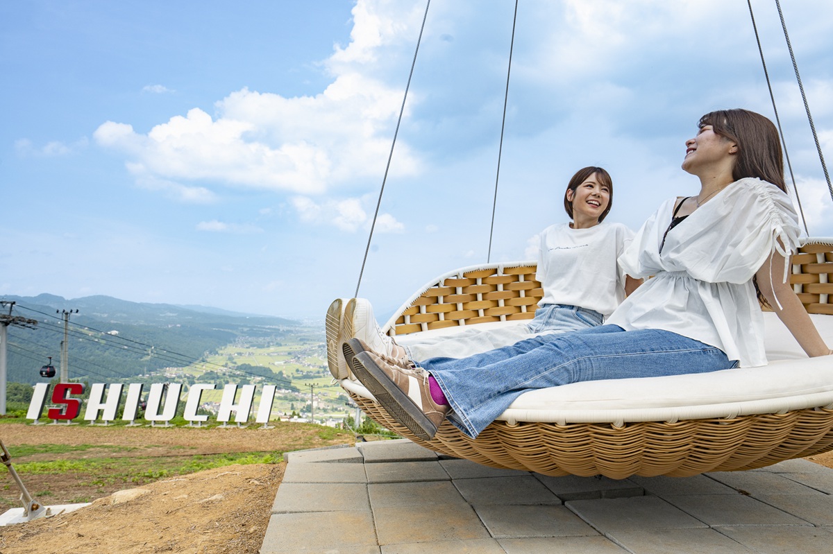 冬はスキー場として有名な「石打丸山スキー場」に、夏でも楽しめる新たな展望スポット「ザ・ヴェランダ石打丸山」が登場。魚沼平野を一望できる絶景テラスを中心に、カフェやドームテントを備えた複合リゾートです。