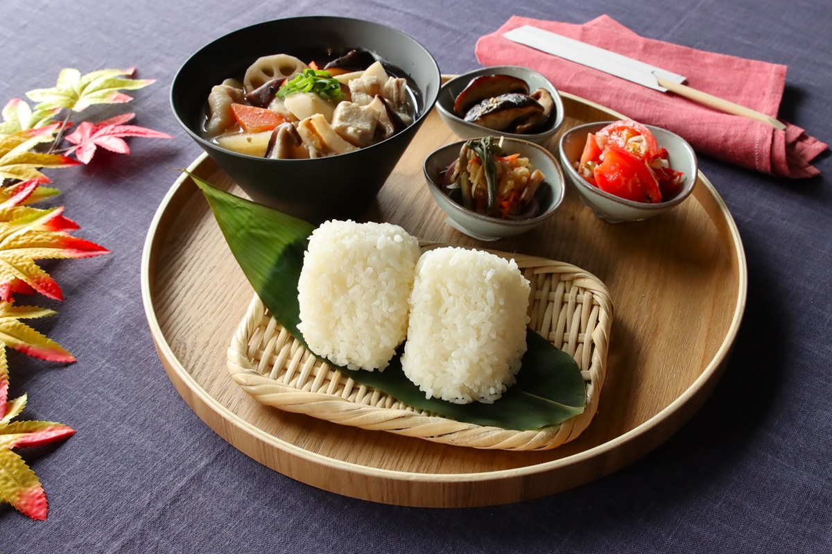 六華を訪れた際に必ず味わいたいのが、秋の限定メニュー「- 魚沼の秋を結ぶ - 六華の新米おむすび御膳」です。米どころとして名高い南魚沼で収穫された最高級のコシヒカリを使用し、蓋を開けた瞬間に立ち上る湯気と甘い香りは、食欲を強く刺激します。一粒一粒が立った炊き立てのご飯は、お米本来の旨みと甘みが凝縮されており、おかずがなくても満足できるほどの美味しさです。この新米を主役に、地元の食材や、麹の調味料を使った料理が添えられ、雪国の食の豊かさを心ゆくまで満喫できます。