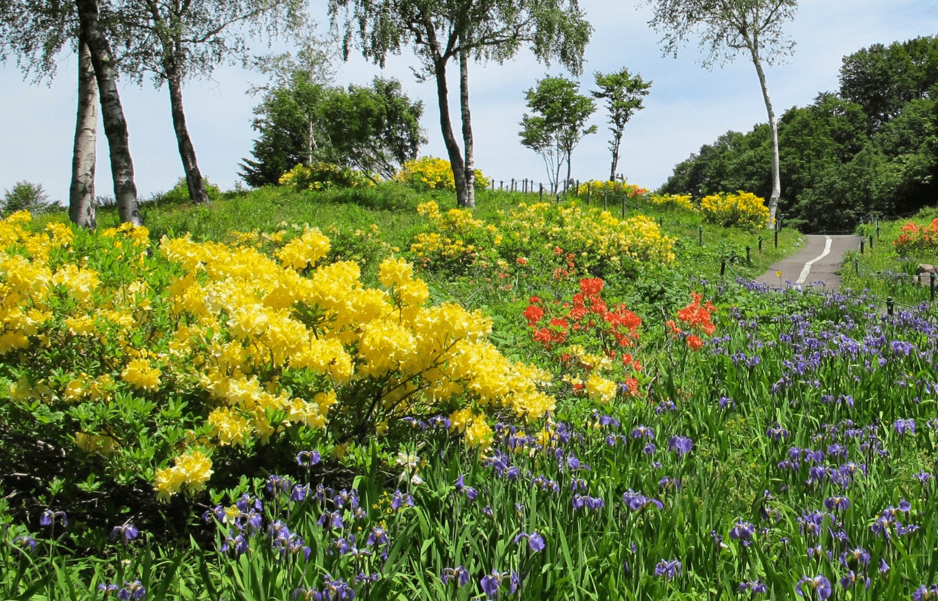 「アルプの里」は、地域最大級の高山植物園で、あやめヶ池のフォトスポットで映え写真を撮ったり、ロックガーデンでは希少な高山植物を見ることができます。ブナの原生林の中を散策できる、トレッキングコースや、様々なアトラクションが用意されているアクティビティエリアもあり、それぞれのニーズに合った遊びを体験しましょう。