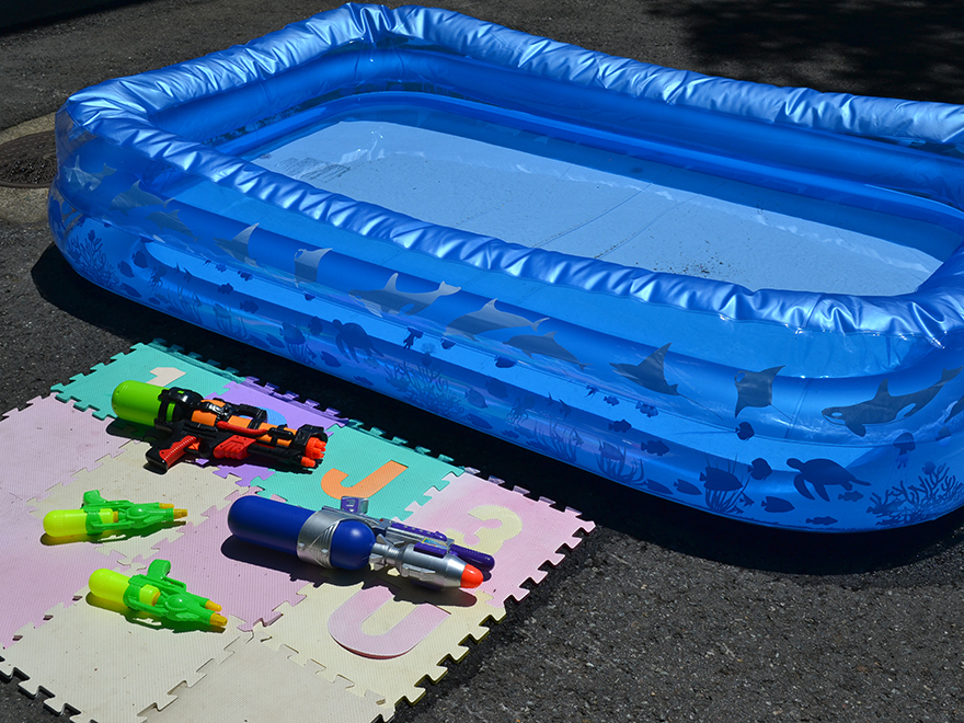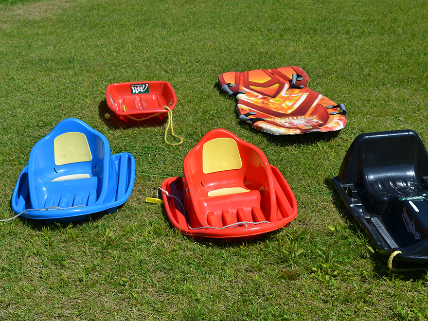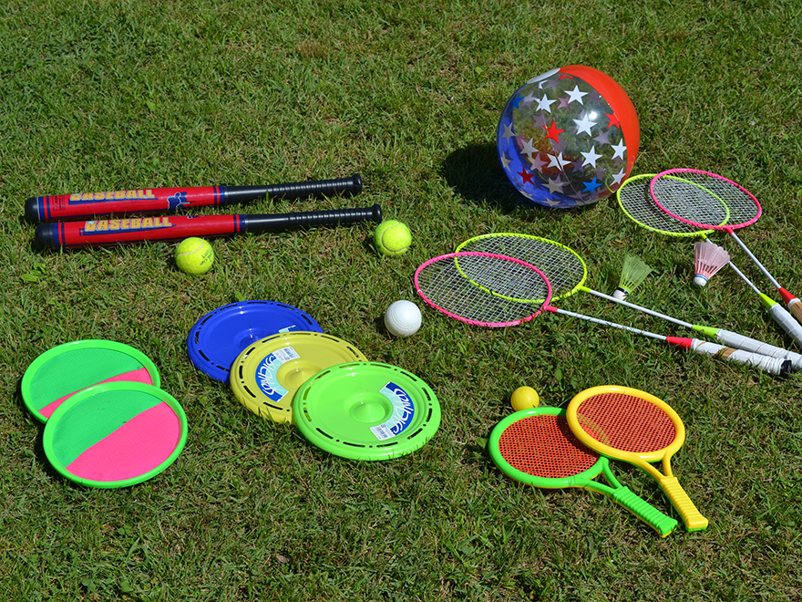 ベースの芝生広場で無料貸し出しの無料遊具♪