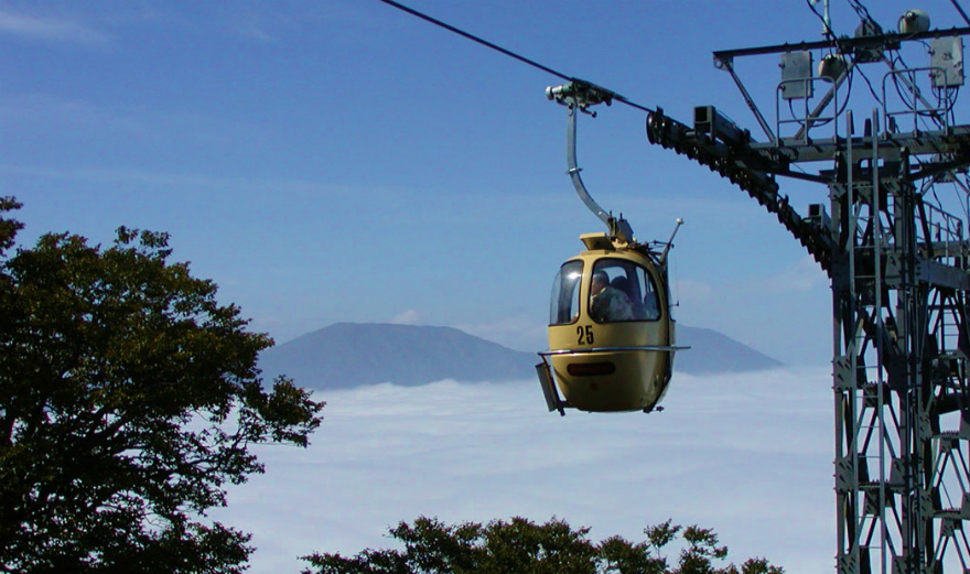 4人乗りゴンドラで山頂に行くと月山や栗駒山などの大パノラマが楽しめます。山頂のぶな原生林遊歩道は、山の四季を満喫できる絶好のトレッキングコースです。