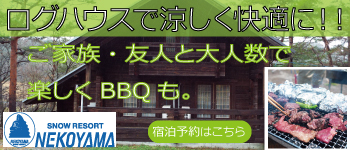 スノーリゾート猫山ではスノーシーズンもご好評いただいているログコテージをグリーンシーズンも営業しています。近くには道後山、比婆山連峰など登山、トレッキングに最適な山々があり、その疲れを癒す「ひばごん郷温泉すずらんの湯」がございます。また、グループやご家族でBBQを楽しんでいただける宿泊プランもご用意しております。もちろん持ち込みでBBQを楽しんでいただくことも出来ます。(但し宿泊者限定)その他観光地への経由地としてのアクセスもよくなっておりますので是非お立ち寄りください。