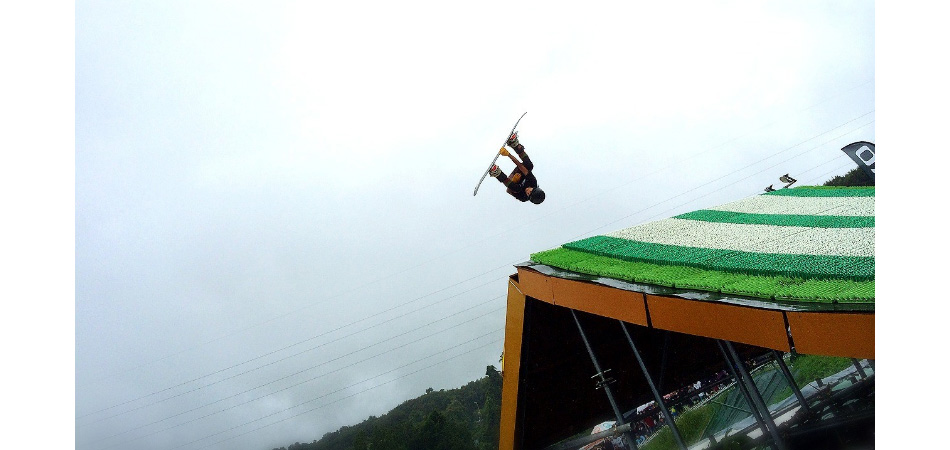 滑走性能の高いeasy rideと呼ばれる人工芝を滑走し、独自のエアマットランディングシステムに着地します。形状が雪上のジャンプ台に近いため、より実際の雪上でのジャンプに近い練習が出来ます。