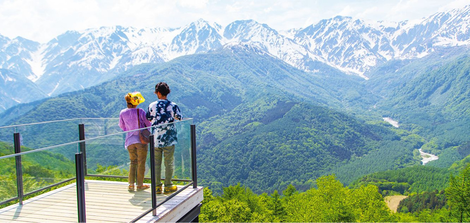 ⽩⾺村の街並みを⾒下ろし、北アルプスの絶景を眺めることのできるコースでは、これまでにない爽快感とスリルを味わえます。