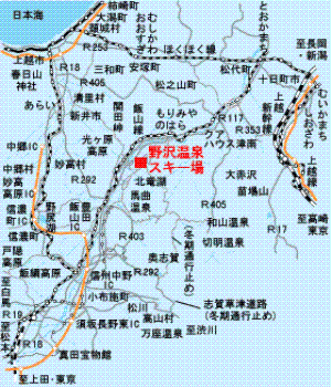 ●上信越自動車道 豊田飯山IC→R117→スキー場 20km