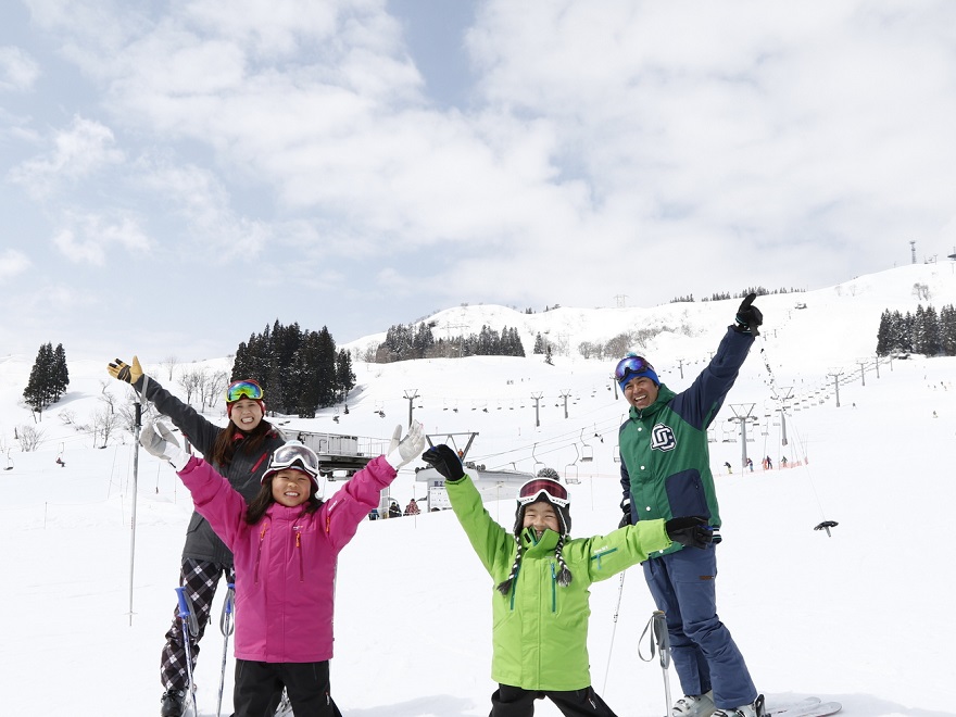 南魚沼市街地や越後の山々が眼下に広がる絶景が一望のメインゲレンデは、最大幅が200mと超ワイド初級コース。ひろびろで滑りやすいから上達が早いので、ファミリー、ビギナーにオススメです!!