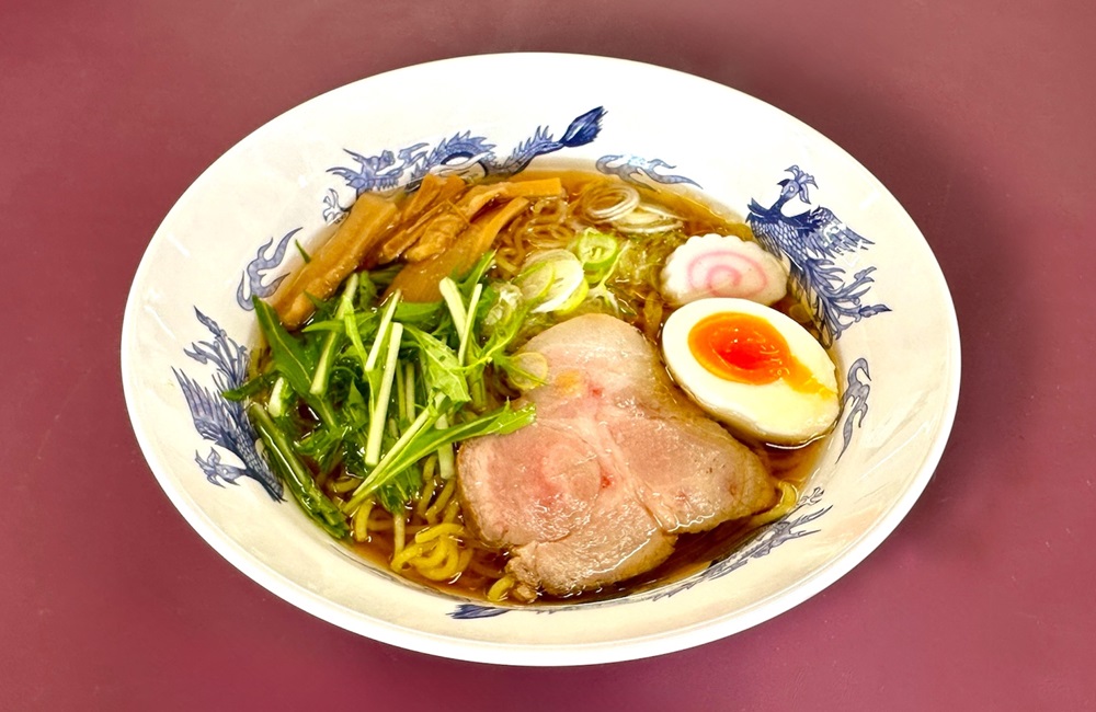 お店で仕込んだ旨味たっぷりのチャーシューが乗った醤油ラーメン