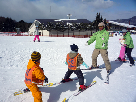 土日祝日・冬休みはジュニア・キンダーレッスンも開講します。キンダーレッスンは雪遊びではなく、スキーが滑れるようにレクチャーします。