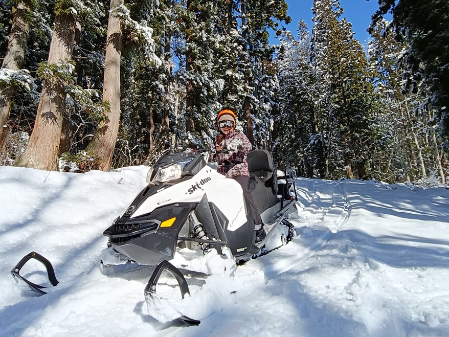 妙高の冬の美しい森の中を約2㎞にわたってスノーモービルで探検する特別な体験が出来ます。
