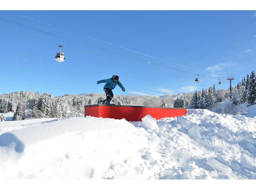 メモワールコースを使ったメインパークはパークビギナーでも楽しめるアトラクションコース。中にはキッカーやジブアイテムもあり流しながら楽しめるパークです。
