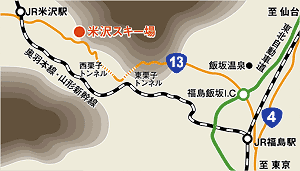 交通手段 | 車 | ●東北自動車道 福島飯坂IC→国道13号線米沢方面に25km 東北中央道 米沢八幡原IC→国道13号線福島方面に7km 積雪情報はこちら |
