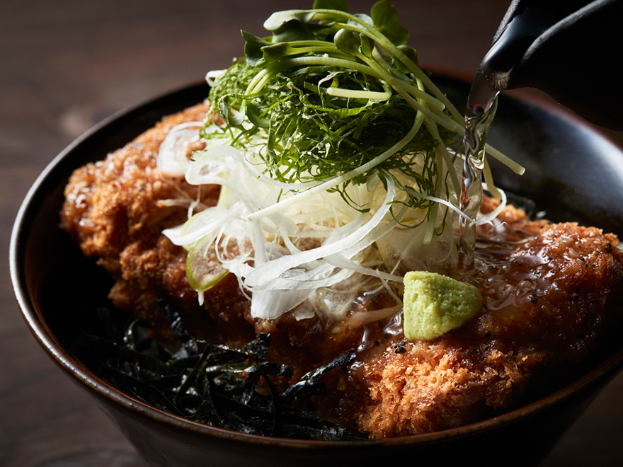 名物「塩カツ丼」。 塩ダレでさっぱり美味しいカツは途中で出汁をかけてお茶漬け風で2度美味しい。「猫魔食堂」「磐梯食堂」にて。