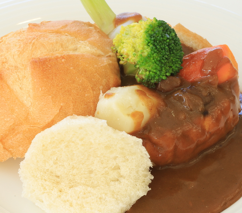 フランスパンの中をくり抜いて、スパイシーなカレーと温野菜を詰め込んだ名物カレーパン。 特に中に入っているカブはとても甘みがありとろけます。 フランスパン・カレー・温野菜の三味一体をお楽しみください。