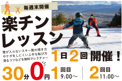 楽ちんレッスンはブーツの履き方から転び方・歩き方など、滑る手前のあれこれを無料でレッスンいたします。