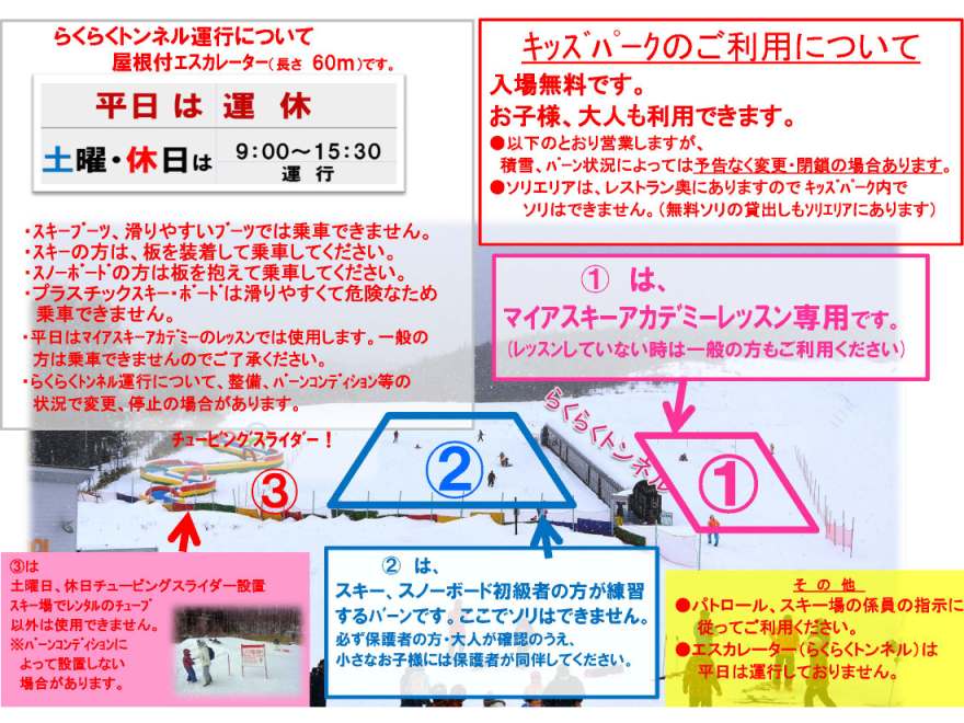 | 備考 | 今季のチュービングスライダーは終了いたしました。 |