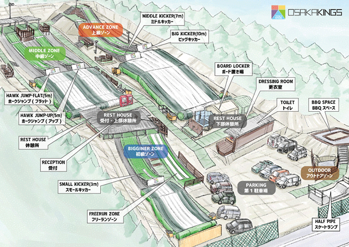 特に大阪キングス新設のホークジャンプでは、浮遊感のある『アップ系』と、ストレス無くスムースに抜ける『抜け系』の2種類に設定されており、より雪山での対応力を高める事の出来る練習を行えます。