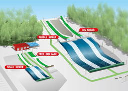 ランディング(着地部分)に特殊なマットが設置され、おもにエアの練習を集中的にする施設。エアマットに着地するので、実際のゲレンデのキッカーよりも安全にトレーニングすることが可能。バグジャンプやKINGSといった施設が有名で、ここ数年で関東甲信越、関西(名古屋)、九州(福岡)などの各地方都市近郊にオープンしている注目のオフトレ施設。夜遅い時間帯まで営業をしている施設が多いので、週末だけでなく平日もトレーニングができる。