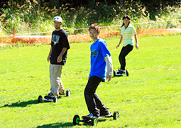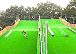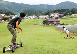 キャタピラや車輪の付いた特殊なスキー、もしくはスノーボードと同じような板の前後に大き目のタイヤが付いたマウンテンボードと呼ばれるアイテムを使って、自然芝のコースを滑るトレーニング施設。グラススキーはアルペンや基礎スキーの選手がオフのトレーニングに取り入れるほどで、ウィンターシーズンに向けた体づくりや本格的な滑りの練習にもなる。また、マウンテンボードもレジャー感覚の遊びから、海外では大会まで開催されるほど人気のあるスポーツ。