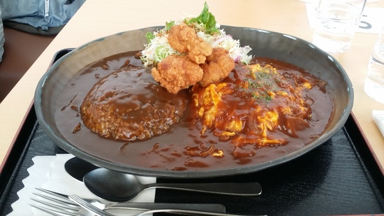 ランチはレストランアゼリアにて。早めに行ったけど少し待ちました。メニューはメガトンプレート。小3の娘とシェアして食べました。