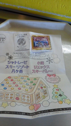 シャトレーゼ系列になってから、サービスが格段に良くなった気がします。平日は毎日プチ企画がありますが、木曜日はスキーヤーズデーで人数分お菓子のプレゼント&更にエコデー期間中でMyハンカチもしくはタオルを提示すると他のお菓子が人数分もらえました。