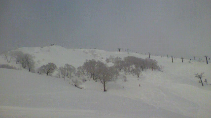 行った日は多少ガスっていましたが、時折晴れて山頂付近では幻想的な雰囲気で綺麗でした。前日に10センチくらいは降雪があったらしく所々サラサラなパウダーが残っていました。苗場名物の大斜面はまだコブはそれほどなかったですね。