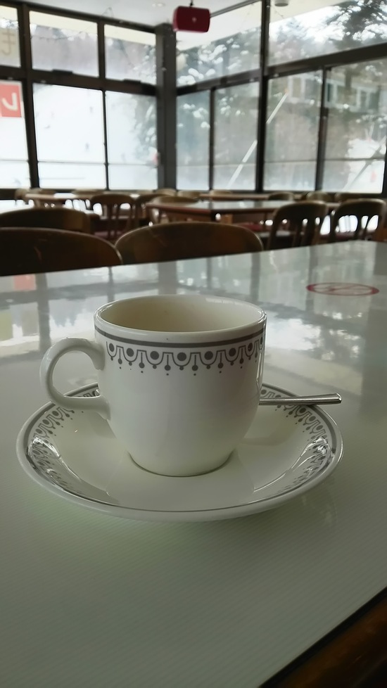 正面の高速リフト乗車中に見えた木が「 桜? 」と思うくらい綺麗だったので撮影しました。 良く見ると枝の水滴が凍りついて光っていたんです。 肝心なゲレンデは文句なし 最新の降雪機で降らせた雪なのか天然の新雪なのかが しっかりついてまして石を踏むような事もなく安心して滑りました 2枚目写真はゲレンデ中間にあるレストランで休憩したコーヒーの写真です平日なので ゆったりしました。 頑張って36本滑りました(笑)
