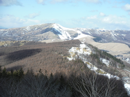 正面に見える霧ケ峰高原は全くといって雪がなく、毎年スノーシューだ楽しんでいたのだけども今年は行けそうありません。