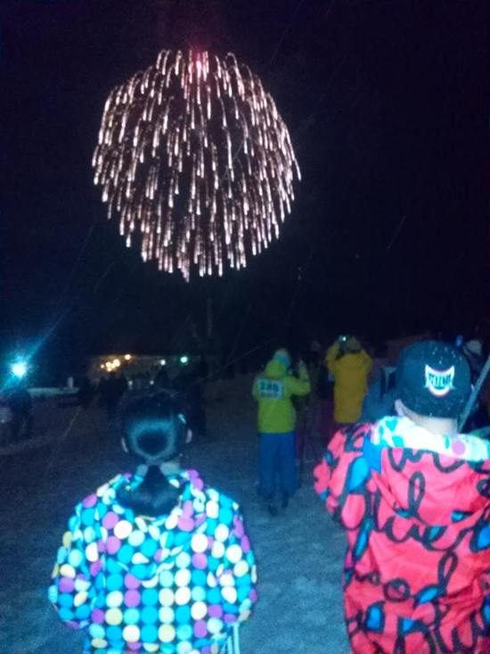 小学生の娘と高校生の三男坊に今シーズン最後の想い出に、たいまつ滑走を体験させてみた!最初はドキドキしていたみただけど、滑りだしたら楽しかった見たい、今から来年もらるぅって言ってるし!、二人とも冬の花火も初体験で感動してた