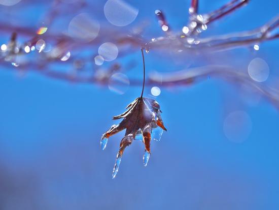 気温が零度以下の凍らない状態の雨が樹木に付着すると氷に変化し、