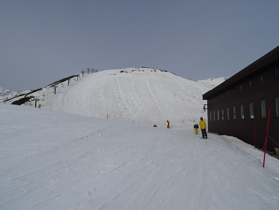 今年は周辺のスキー場もすべて少ない雪に苦しみましたが、最後はここで閉めることにしています。朝一番から唐松を目指して登る人(オフピステをすべる人も多いです)もゾクゾク登って行きます。、