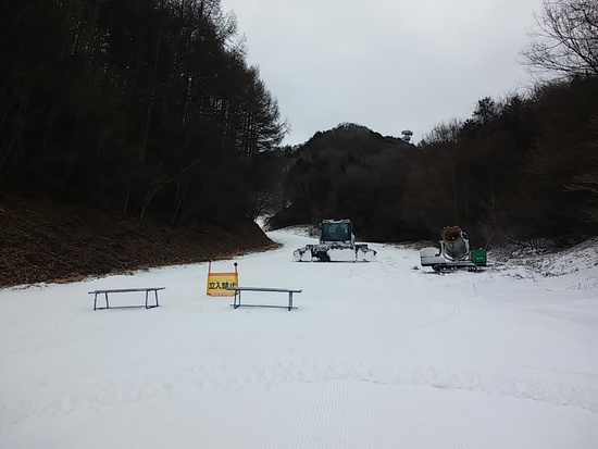 スキー場周りには全く雪がなく、ゲレンデのコースにだけスノーマシンで作った雪がある状態で、コースは狭く、滑走可能コースは4本だけでした。