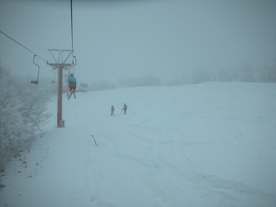 頂上のゲレンデ:第3リフトが今日からオープンと聞き、降り積もった斜度30° オーバーの 新深雪 を楽しみに早速行って来ました。終日ふかふかの深雪が楽しめて、至極の1日でしたよ。ゲレンデはびっくりするほど少なくおどろきました。