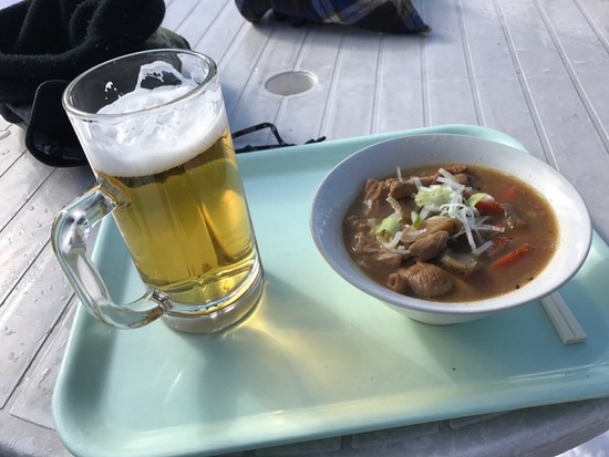 食事もゲレンデ脇に食事処があり、天気の良い日は外のテーブルで食べられるので最高です。