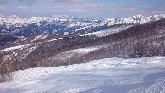 固めの圧雪でしたが、文句なしのどピーカンで気持ち良くロングコースが楽しめました。