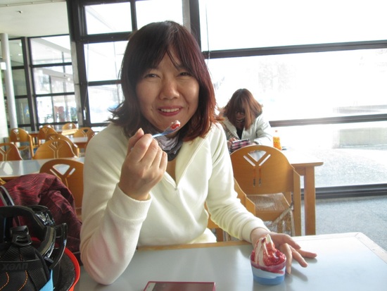 五竜のセンターハウス「エスカルプラザ」、充実度が素晴らしい。この日はガラスに反映する景色もきれいだしスゥイーツ「ヨゴリーノ」にも満足。