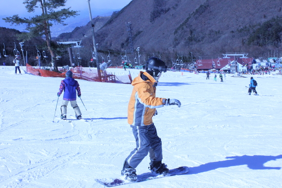 初めてスノーボードに挑戦で悪戦苦闘。まったくの初心者に適したバーンはスキー専用だったりで、いまいち。用具はレンタルしたけど、履き方などあまり丁寧には教えてくれない!しかもゲレンデは外国人の方含めイモ洗い状態。ちょっと混みすぎ。でも4時間くらいでなんとかターンを連続してできるようになり本日は全身筋肉痛につき終了。スキーもボードも奥深いですね・・・・これだからスポーツはやめられない!
