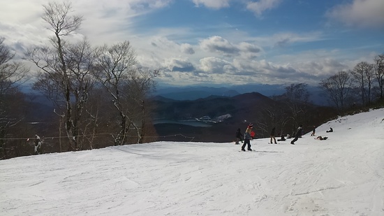 雪質は天然の降雪と人工雪で朝一のバーンは固め、午前中にはゆるんできましたが午後には少し硬くなり、バーンの変化には注意が必要です。
