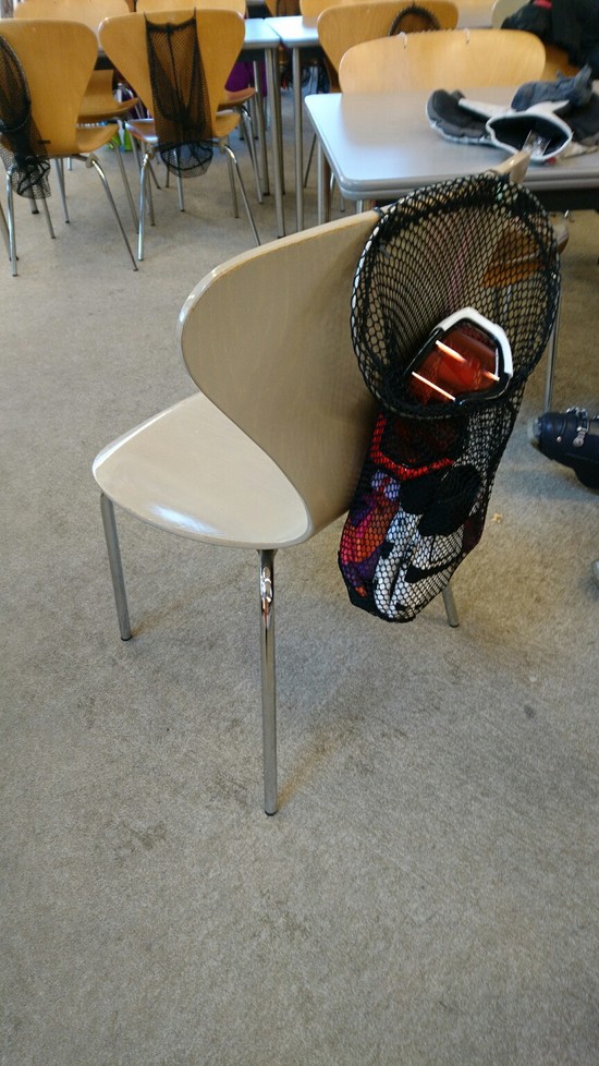 第2駐車場前のレストランバウムでランチしたのですが、写真のように素晴らしいアイデアが椅子に装着されていて感動しました。
