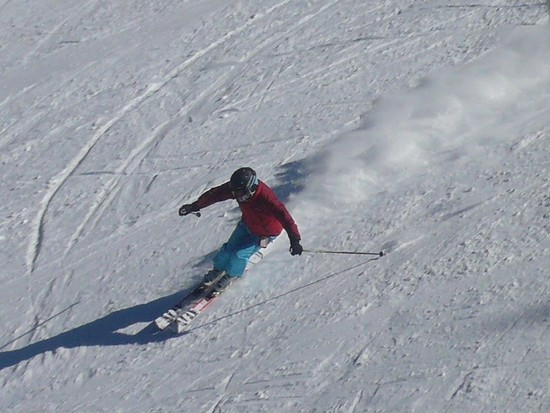 4月並みの気温とか。 低地のスキー場はべしゃっているでしょうね。 野麦はまだまだパウっていました。