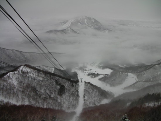 南岸低気圧の前線で全国的に雨降りの日。霧と雨で視界の非常に悪い日でしたが平日にも拘らず大勢の若者ボーダーで賑っていました。ここは竜王「スキー」パークですが、今日はスキー率2%くらい、98%はボーダーでした。